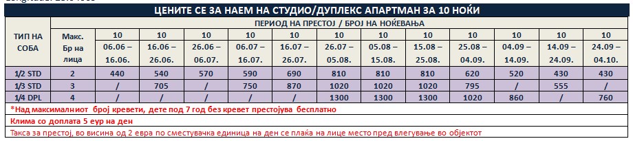 10% ПОПУСТ ЗА КОМПЛЕТНА УПЛАТА СО РЕЗЕРВАЦИЈА *ВАЖИ САМО ЗА СМЕНИТЕ ВО ЈУНИ И СЕПТЕМВРИ