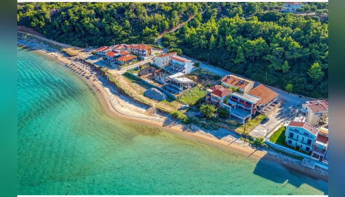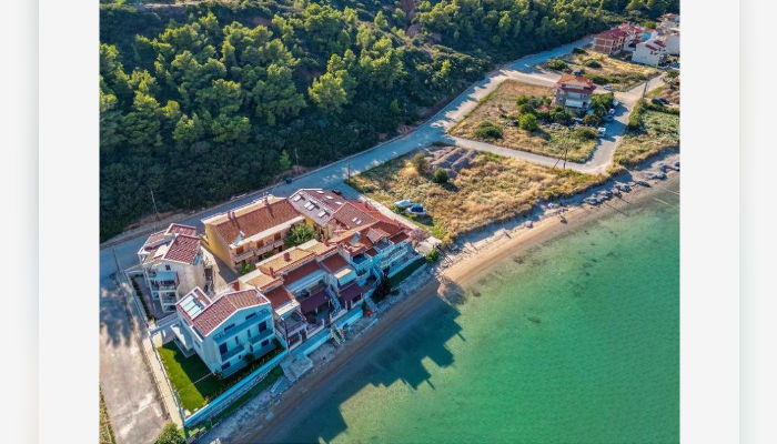 ALEXANDRA BEACH – куќата се наоѓа во мирен дел на Неа Потидеа, на самиот крај на местото и на само околу 20-ина метри од брегот. Во понуда се четирикреветни и петкреветни дуплекс апартмани на 2 нивоа. На приземјето се кујната, купатилото и една спална соба, додека на 2. ниво е уште една спална соба. Секоја сместувачка единици поседува тераса со бочен поглед на море (пред влезот во апартманот), дел од задниот двор во кој се излегува од спалната соба, ТВ и 2 клима уреди, чие користење е вклучено во цената за наем. Во текот на престојот гостите сами ја одржуваат хигиената на сместувачките единици а постелнината се менува на половина од престојот. Нема пешкири. Објектот е покриен со бежичен интернет, за чија брзина агенцијата не може да гарантира.