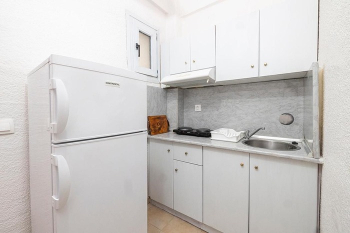Студио бр. 4 – високо приземје. Располага со комплетно опремена кујна со голем фрижидер и мало решо, комплетно реновиран тоалет, сопствена тераса опремена со маса и столови и поглед кон парк, клима, ТВ, Wi-Fi. Има француски кревет и еден стандарден кревет.