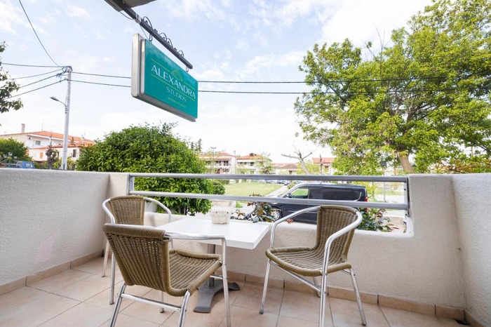 Куќа Аlexandra се наоѓа на одлична локација и има многу лесен пристап до прекрасната плажа која е на само 5-7 минути пешачење. Располагаме со 2 двокреветни студија, 3 трокреветни студија и едно четирикреветно студио. Сите студија се реновирани и располагаат со сопствени балкони, комарници, опремена кујна, ЛЦД ТВ, сопствени реновирани тоалети со пешкири. Интернетот, климата и сет пешкири се вклучени во цената. Паркинг простор обезбеден пред куќата.