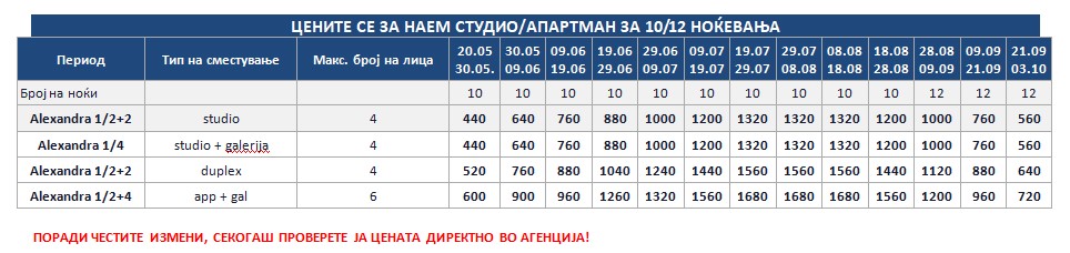 *Понудата е исклучиво за сопствен превоз и нема можност за резервација на автобуски превоз од Македонија!