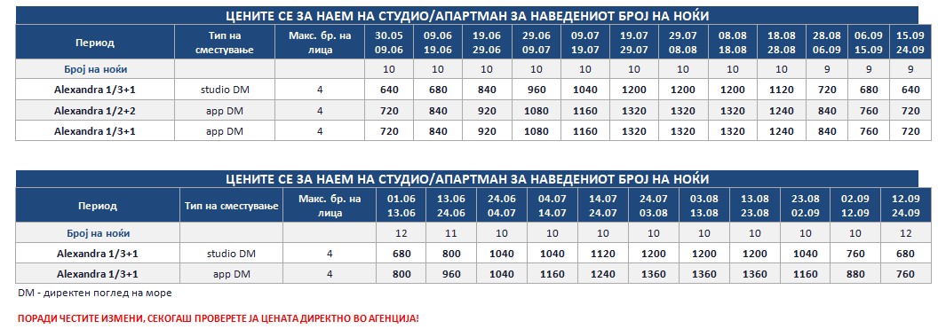 *Понудата е исклучиво за сопствен превоз и нема можност за резервација на автобуски превоз од Македонија!