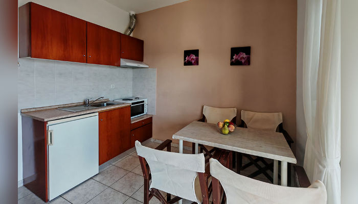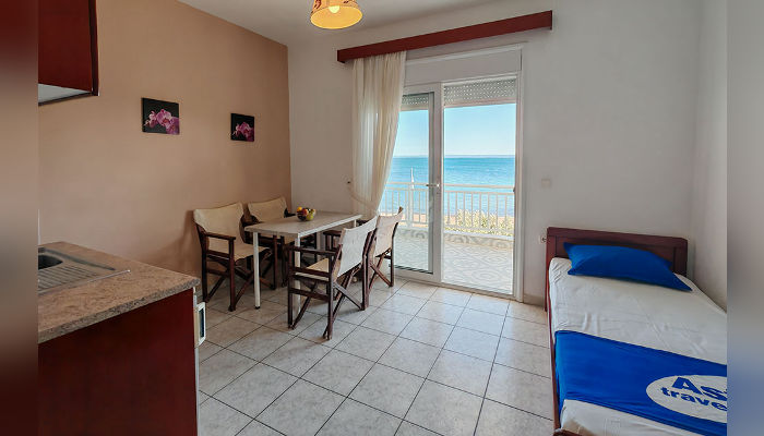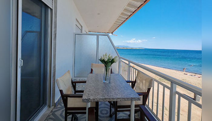 ALEXANDRA – Куќата се наоѓа на самата плажа во Псакудија и сите тераси имаат директен поглед на море. Четворокреветните студија и апартмани се наоѓаат на приземје и на прв кат. Сите имаат TV, клима вклучена во јули и август, бежичен интернет, за чија брзина агенцијата не може да гарантира. Опремени се со мали фрижидери, решо или мини шпорети, пешкири, комарници, големи тераси со поглед на море. Четвртиот кревет во студијата и апартманите е фиока со душек а во 2+2 апартман кревети на кат. Позади куќата е простор за паркинг за ограничен број возила.