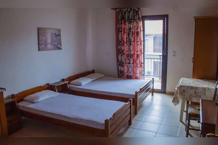 бр.203- 1/3 студио со два „грчки“ потесни дупли кревета, поглед кон заден двор и градина. Се наоѓа на 1 кат.
