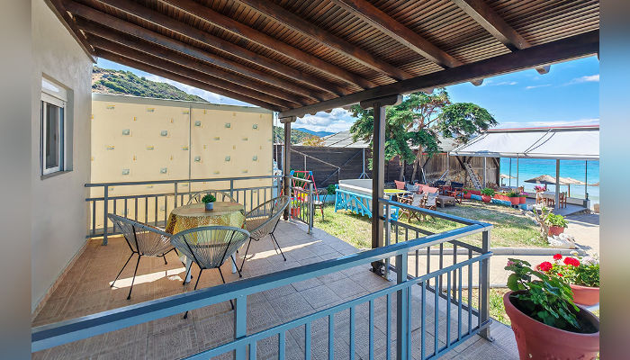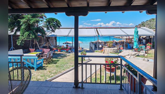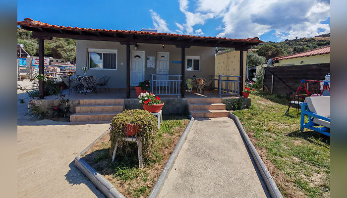 Ammos house се наоѓа на добро познатата плажа Климатариа, која спаѓа во редот на најубавите и најпопуларни плажи на цела Ситонија. Студиото и апартманот се наоѓаат на високо приземје и имаат директен поглед на море. Имаат клима уред, чие користење е вклучено во цената и сигнал за бежичен интернет, за чија брзина и проток агенцијата не може да гарантира. Позади куќата има простор за паркирање на возилата.