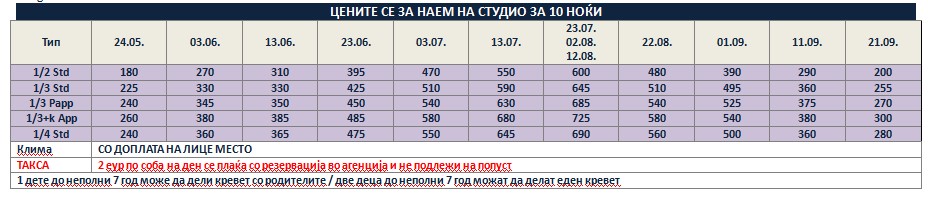 *Понудата е исклучиво за сопствен превоз и нема можност за резервација на автобуски превоз од Македонија!