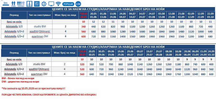 *Понудата е исклучиво за сопствен превоз и нема можност за резервација на автобуски превоз од Македонија!