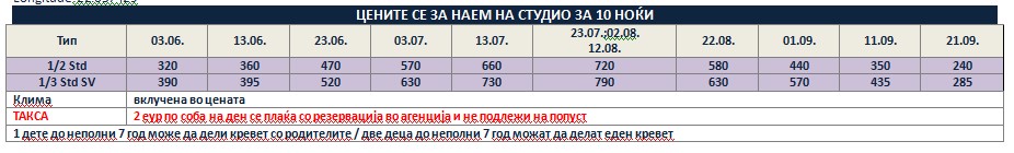*Понудата е исклучиво за сопствен превоз и нема можност за резервација на автобуски превоз од Македонија!