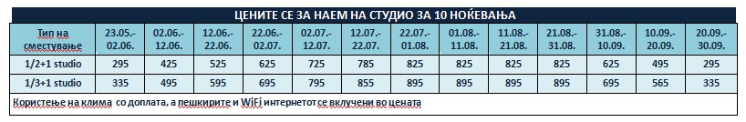 *Понудата е исклучиво за сопствен превоз и нема можност за резервација на автобуски превоз од Македонија!