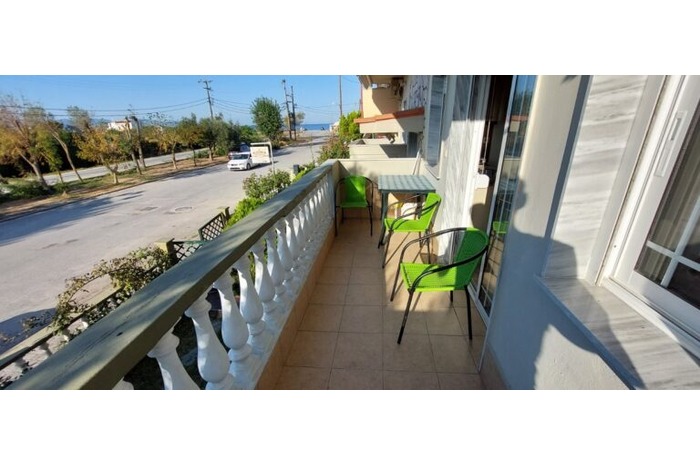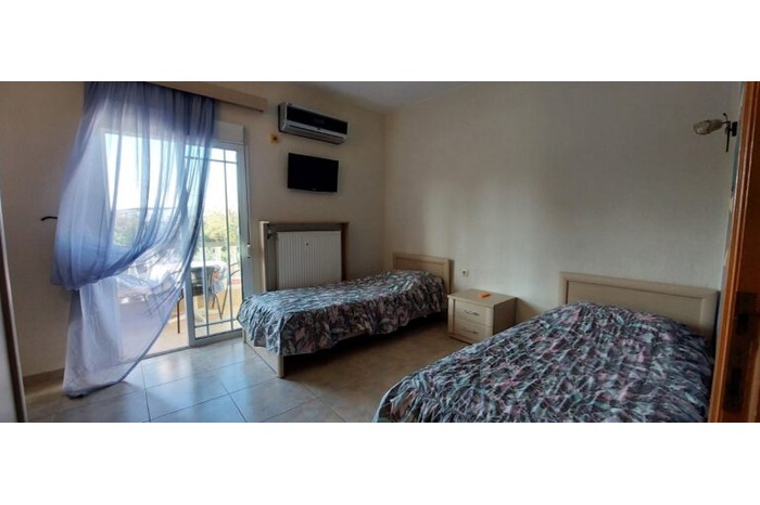 Дуплексот е составен од две спални соби + кујна + купатило со вц + две тераси. Во првата спална соба има два единечни кревети, тв, клима уред, плакар за алишта и излегува на тераса со страничен поглед на море. Втората спална соба има еден дупли кревет, плакар за алишта, клима уред и излегува на тераса. Кујната е опремена со кујнски инвентар, голем фрижидер, решо со две рингли. Дуплексот располага со стандардно купатило и вц.