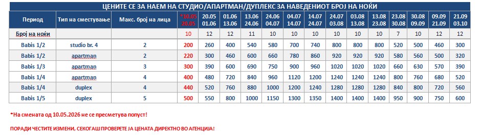 *Понудата е исклучиво за сопствен превоз и нема можност за резервација на автобуски превоз од Македонија!