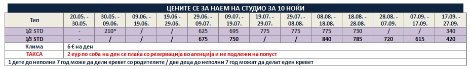 *Понудата е исклучиво за сопствен превоз и нема можност за резервација на автобуски превоз од Македонија!