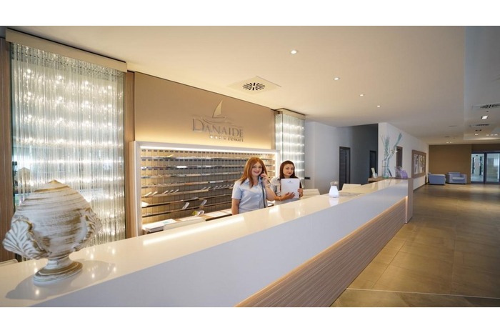 Danaide Resort 4* е сместен во местото Лидо ди Скацано, на 4 км од најблиското гратче Скацано Јонико, каде е и железничка станица. Оддалеченост од Бари е 130 км. Хотелот Danaide Resort 4* е резорт, кој нуди многу спортски активности и добра услуга. Нуди и дневна и вечерна забава со претстави и музика за сите возрасти. Хотелот располага со големи зелени површини и голем базен. Има и барови, ресторани, сала за состаноци, СПА центар и трговски дел (продавница, бутик и др.). Плажа Се наоѓа на 500 метри од хотелот до која се стигнува по патека низ убава борова шума. Постои и трансфер до плажа. Соби Резортот располага со 108 соби и 114 апартамни со различни можности за сместување. Постојат двокреветни и четворокреветни соби. Нудат: плазма телевизор, голем балкон, минибар, купатило со туш, поглед на базен или море, паркинг, клима, сеф, фен. Ресторан Исхраната во ресторанот е на шведска маса со локални јадења, приготвени од селектирани продукти. Хотелска понуда: игралиште, мини клуб, тениски терени, спортски турнири: тенис, фудбал,одбојка, куглање, пливање, стрелање со лак, базен од 2000 кв. метри, бебешко креветче на барање, услуги на плажа.