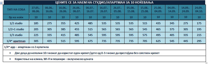 *Понудата е исклучиво за сопствен превоз и нема можност за резервација на автобуски превоз од Македонија!