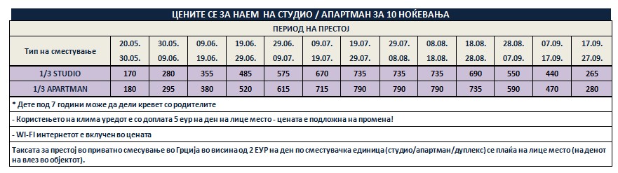 *Понудата е исклучиво за сопствен превоз и нема можност за резервација на автобуски превоз од Македонија!