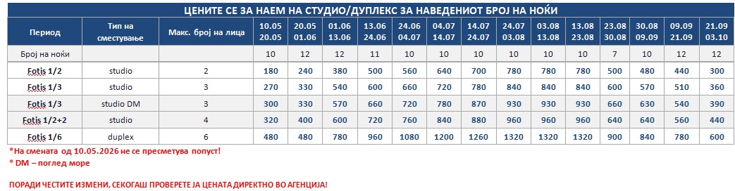 *Понудата е исклучиво за сопствен превоз и нема можност за резервација на автобуски превоз од Македонија!