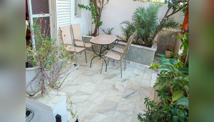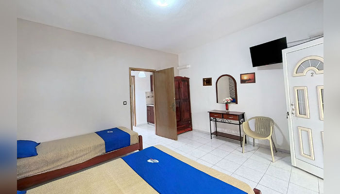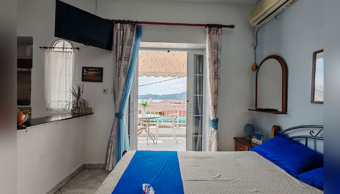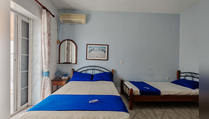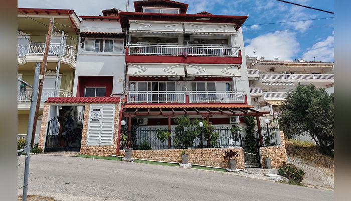 FOTIS – Се наоѓа во стариот дел на Сарти во близина на црквата, на околу 260 m oд морето. Студијата за 3 лица се наоѓаат на прв кат, двокреветно студио на втор кат, a дуплексот и студиото за 4 лица на приземје. Балконите на студијата бр. 1 и 2 имаат поглед море, a студијата бр. 3, 4 и 7 на двор, додека дуплексот има две тераси, едната гледа кон улицата, а другата е кон ѕидот од другата куќа. Сите имаат SAT TV, бежичен интернет, за чија брзина агенцијата не може да гарантира и клима уред со доплата. Опремени се со мали фрижидери, дуплекс апартман има два (едниот во кујна, а другиот во една од спални соби), решо, комарници, тераси со тенди, сместувачките единици на приземје имаат сенка од винова лоза, купатила со озидана туш-када. Студијата се со француски кревет, француски и единечен или француски и кревети на кат. Дуплекс апартманот има во секоја спална соба по еден француски и еден единечен кревет. Скарата на влезот гостите можат да ја користат.