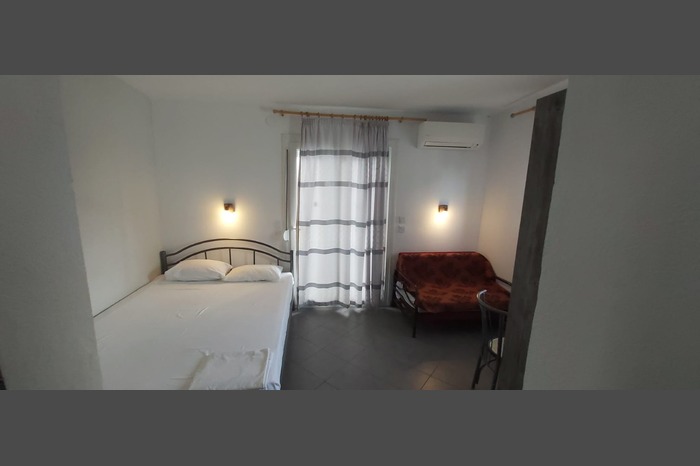 Куќата Greco Furs се наоѓа во непосредна близина на центарот на Ханиоти, на само 120 метри од плажата. Отспротива се наоѓа јавен паркинг. Во понуда се двокреветни студија со помошно легло (фотеља на расклопување), трокреветни студија со дупли кревети и единечен стандарден кревет и 3+1 студија со дупли кревет и софа на расклопување. Сите студија имаат опремен кујнски дел, купатило, пешкири, тераса, ТВ, бежичен интернет, за чија брзина агенцијата не може да гарантира и клима уред, чие користење е вклучено во цената.