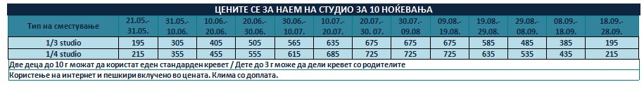 *Понудата е исклучиво за сопствен превоз и нема можност за резервација на автобуски превоз од Македонија!