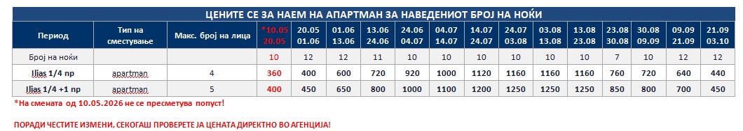 *Понудата е исклучиво за сопствен превоз и нема можност за резервација на автобуски превоз од Македонија!