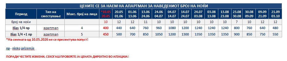 *Понудата е исклучиво за сопствен превоз и нема можност за резервација на автобуски превоз од Македонија!