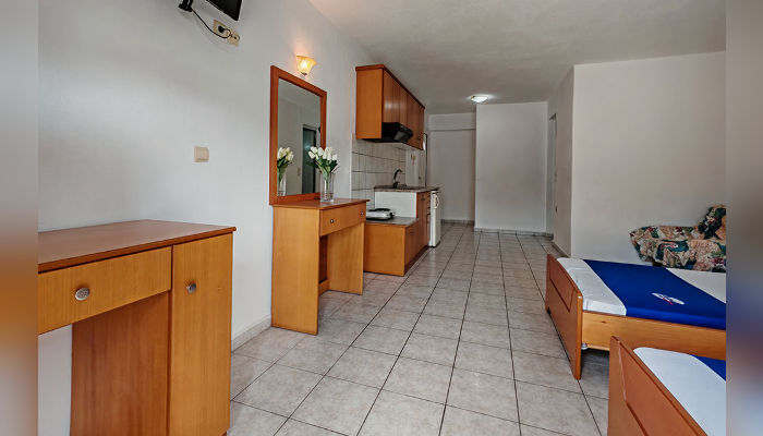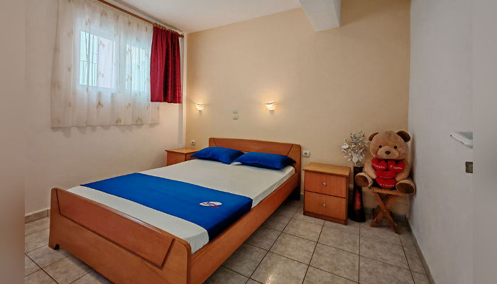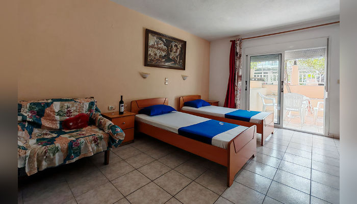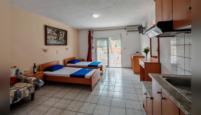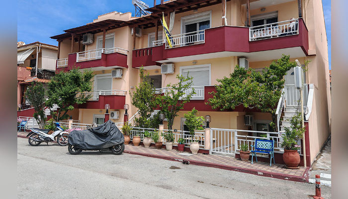 ILIAS – Се наоѓа на 80 m oд плажата во новиот дел на Сарти. Апартманите се на ниско приземје и имаат пространи тераси со поглед кон мирната улица. Исклучително пространите апартмани имаат SAT TV, бежичен интернет, за чија брзина агенцијата не може да гарантира и клима уред, чие користење се доплаќа. Апартманите имаат француски кревет и два единечни или два француски, помошен кревет е фотеља на расклопување, мал фрижидер, решо, купатило со озидана туш-када, комарници, клима уред во кујнскиот дел.