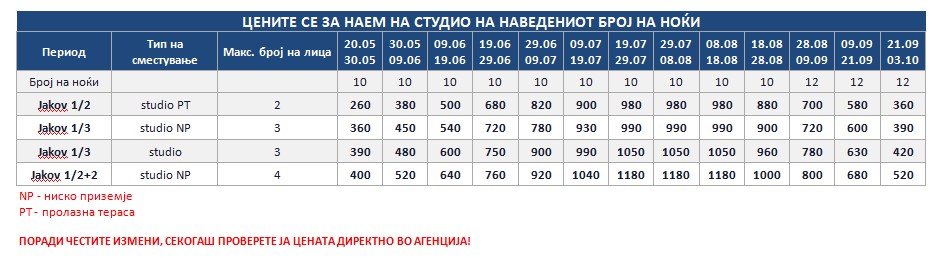 *Понудата е исклучиво за сопствен превоз и нема можност за резервација на автобуски превоз од Македонија!