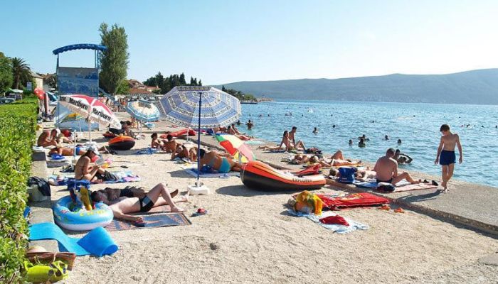 Плажата Плави Хоризонти, која се наоѓа на полуостровот Луштица e 300 метри покриена со извонреден златен песок и сместена среде живописната борова шума со маслинови дрвја. Плажата нуди низа рекреативни активности, вклучувајќи одбојка на плажа, тенис и кошарка. Дополнително, на лице место има ресторан кој нуди врвна услуга. Оваа плажа е со плаво знаме.