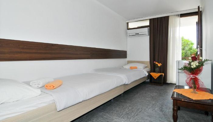 Собите за две лица се со брачен или два единечни кревети (поголем дел од собите кои што се со два единечни кревети немат можност креветите да се спојат еден до друг!). Собите се со сопствен тоалет, клима уред и фрижидер. Во собите нема мини кујна.