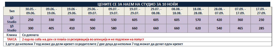 *Понудата е исклучиво за сопствен превоз и нема можност за резервација на автобуски превоз од Македонија!