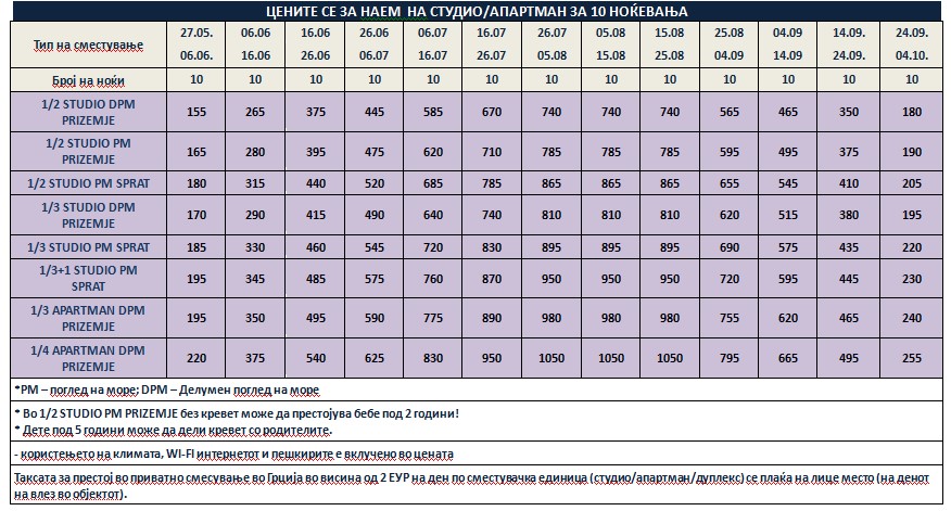*Понудата е исклучиво за сопствен превоз и нема можност за резервација на автобуски превоз од Македонија!