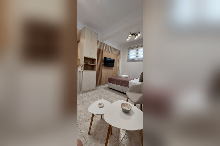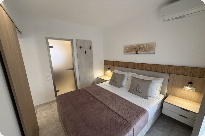 LUMINA SUITES (ex PANDORA House) е комплетно реновирана куќа за сезоната Лето 2025. Се наоѓа на околу 90 m од песочната плажа во Псакудија, на благо возвишение, од кое дел од студијата и апартманите имаат поглед кон морето. Во понуда се студија и апартмани на ниско приземје, на 1. и на 2. кат. Собите број 3, 4, 5 и 6, кои во ценовникот се означени како сместувачки единици со издвоена тераса (IT), наместо тераса имаат свое издвоено место во летниковецот со маса и столици.