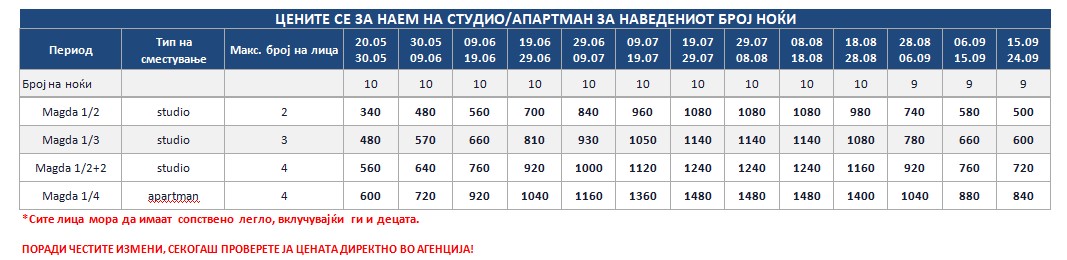 *Понудата е исклучиво за сопствен превоз и нема можност за резервација на автобуски превоз од Македонија!
