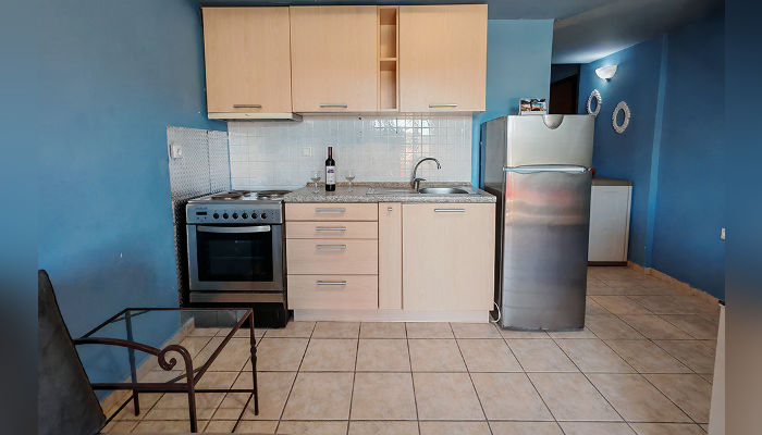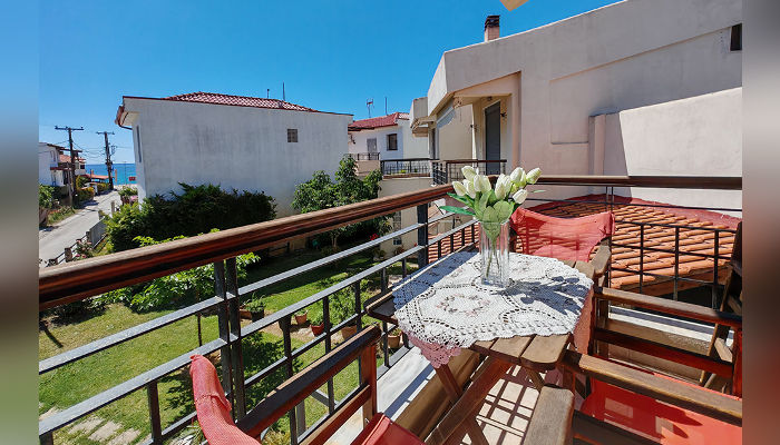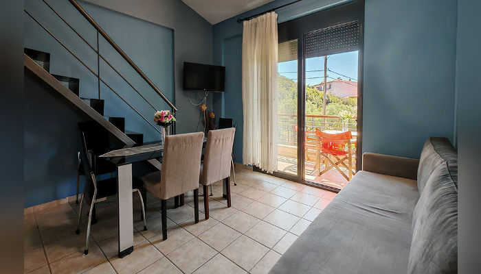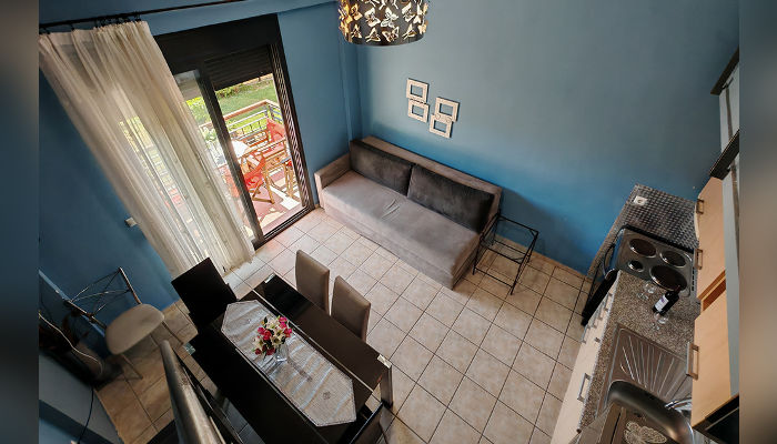 MARIA – Куќата се наоѓа карши куќата Магда на само 80 m од плажата во Каламици. На прв кат од куќата е простран апартман со галерија за 6 лица. На долниот дел е дневна соба со голема кујна, софа на расклопување, голем фрижидер со комора, голем шпорет, спална соба со француски кревет и купатило, пешкири, а на галеријата е француски кревет. Апартманот има ТВ и две клими вклучени во цената (едната е во спална соба, а втората во дневна).