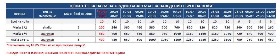 *Понудата е исклучиво за сопствен превоз и нема можност за резервација на автобуски превоз од Македонија!
