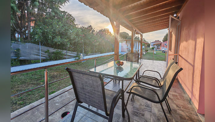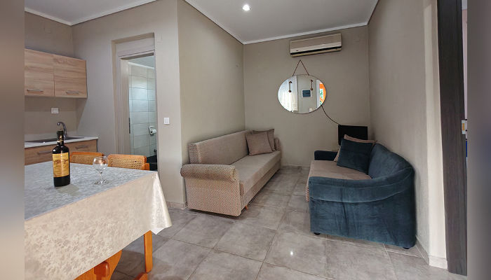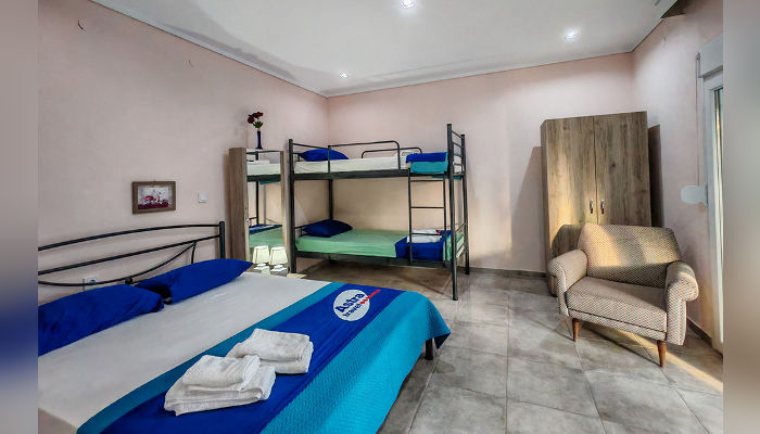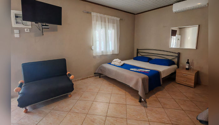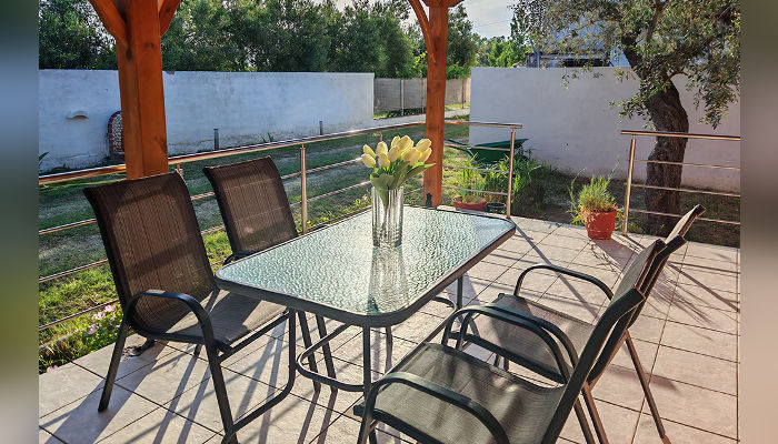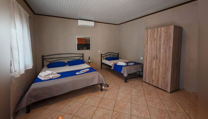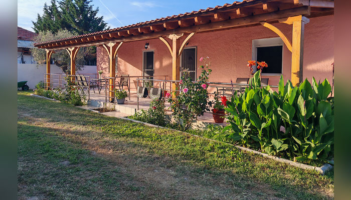 MARIA – Куќата се наоѓа на 450 метри од морето – пешки. Доколку сакате со возило до плажа, оддалеченоста е под 1 км. Студиo и апартманот се наоѓаат на приземје во мирниот дел на Торони. Сите сместувачки единици имаат ТВ, кујни со садови и прибор, мал фрижидер и решо, клима уред, чие користење е вклучено во цената, како и бежичен интернет, за чија брзина агенцијата не може да гарантира, комарници и пешкири, како и големи трем тераси опремени со маса и столови. Објектот поседува тревнат двор со скара и паркинг простор.