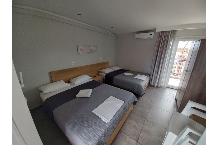 MARIA – куќата се наоѓа во центарот на Калитеа, веднаш до паркот, на 500м оддалеченост од море. Располага со трокреветни и четворокреветни студија, сите опремени со клима (со доплата на лице место), мини кујна со решо, сопствен тоалет со туш, балкон, интернет (за јачината на истиот туристичката агенција не гарантира и не одговара). Сместувачките единици се лоцирани на прв и втор кат. Студијата на втор кат се изградени 2021. год.