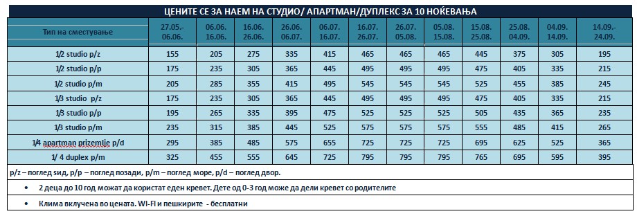 *Понудата е исклучиво за сопствен превоз и нема можност за резервација на автобуски превоз од Македонија!