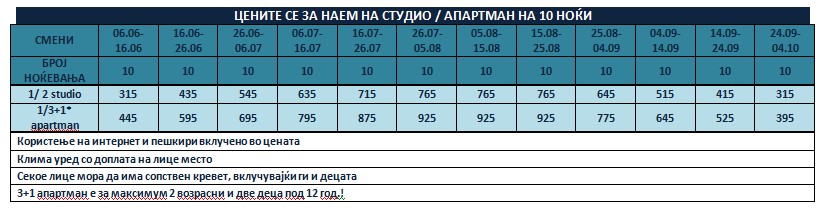 *Понудата е исклучиво за сопствен превоз и нема можност за резервација на автобуски превоз од Македонија!