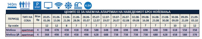– за комплетна уплата со резервација за престој во термините со почеток од 20.05. – 12.06. и 28.08. – 24.09., се одобрува попуст од 50% на цената на наемот за избраното сместување