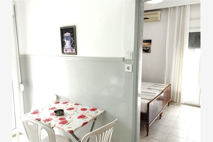 Mihalis се наоѓа во централниот дел, на околу 50м плажата во Неа Флогита. Во понуда се двокреветни, трикреветни полуапартмани кои се наоѓаат на 1. и на 2. кат, како и петкреветни и шесткреветни дуплекс апартмани на приземјето. Сите имаат опремена кујна со мини шпорет, купатило, тераса, сигнал за бежичен интернет, за чија брзина и проток агенцијата не може да гарантира, TV и клима уред, чие користење е вклучено во цената. Менување на постелнината е еднаш во текот на престојот.