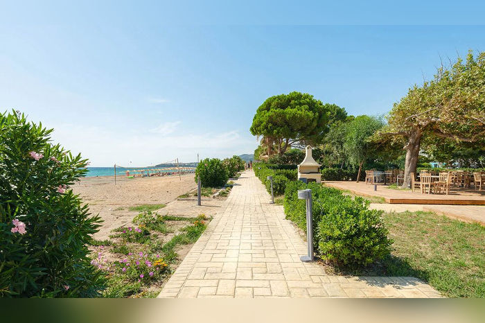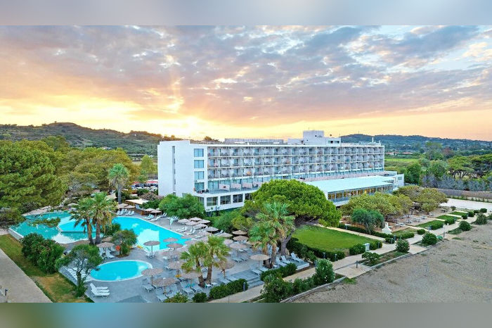 Ninos Grand Hotel & Resort **** Nestled in the scenic expanse of Western Greece, near the charming city of Parga and merely 18 km from Preveza, lies the exquisite Ninos Grand Beach Hotel & Resort. Positioned in a coveted spot right on the dazzling sandy shores of Kastrosikia, boasting the Mediterranean’s longest coastline, this hotel stands as a testament to luxury and natural beauty. Having undergone a complete renovation, this palace-like resort blends modern aesthetics with timeless elegance amidst a breathtaking backdrop. The property spans 46 acres adorned with meticulously curated gardens, bursting with a variety of flowers and trees, creating an enchanting ambiance.