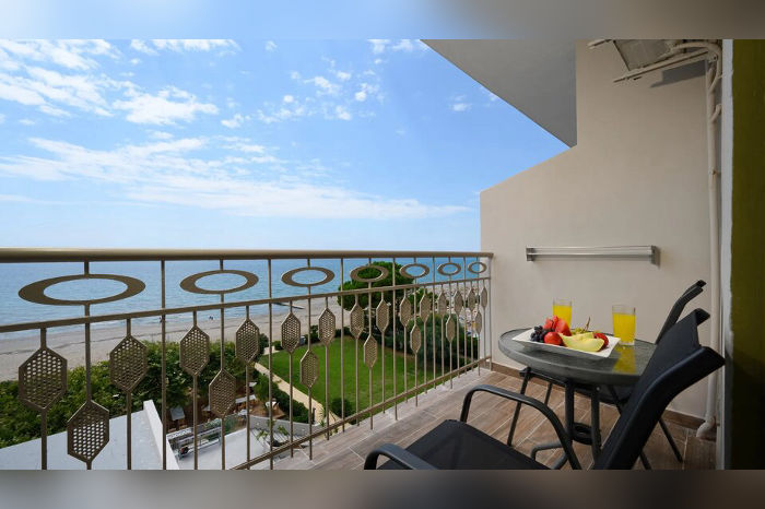 For leisure and recreation, the hotel offers an array of amenities including a swimming pool, ping-pong and tennis tables, a basketball court, a kids’ club, and a dedicated kids’ pool. Elevating the experience further, two themed nights a week come alive with vibrant live music and traditional Greek dancing.