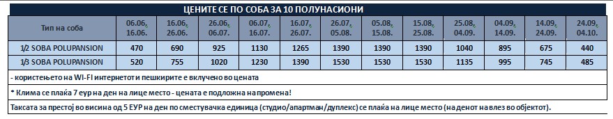 *Понудата е исклучиво за сопствен превоз и нема можност за резервација на автобуски превоз од Македонија!