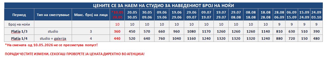 *Понудата е исклучиво за сопствен превоз и нема можност за резервација на автобуски превоз од Македонија!