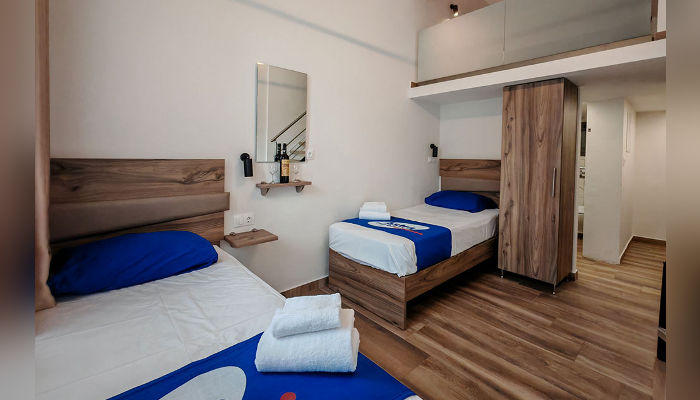 PLATIA – Куќата се наоѓа во стариот дел на Сарти, блиску до плоштадот, по кој и самото име на куќата го добила. Од морето и плажата е оддалечена околу 80m. Во понуда се трокреветни студија и четворокреветни студија со галерија, на приземје. Сите сместувачки единици имаат ТВ, бежичен интернет, за чија брзина агенцијата не може да гарантира, клима уред, чие користење е вклучено во цената, опремена кујна, тоалет.