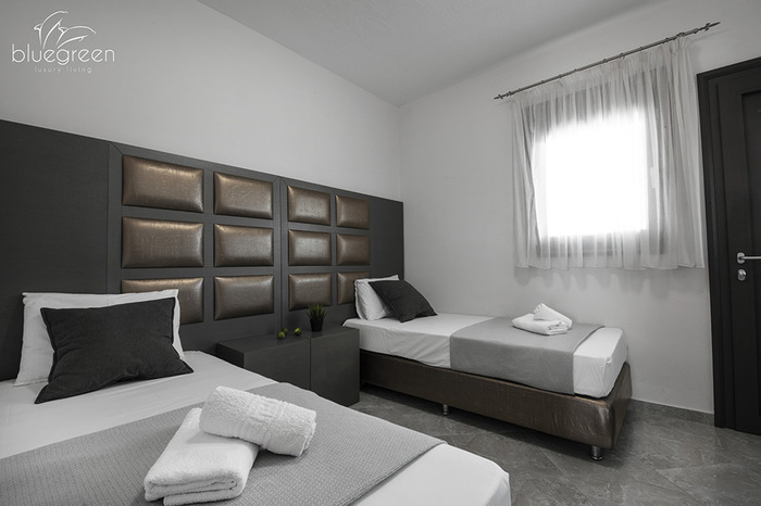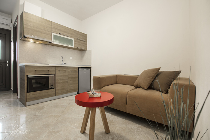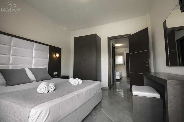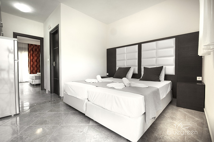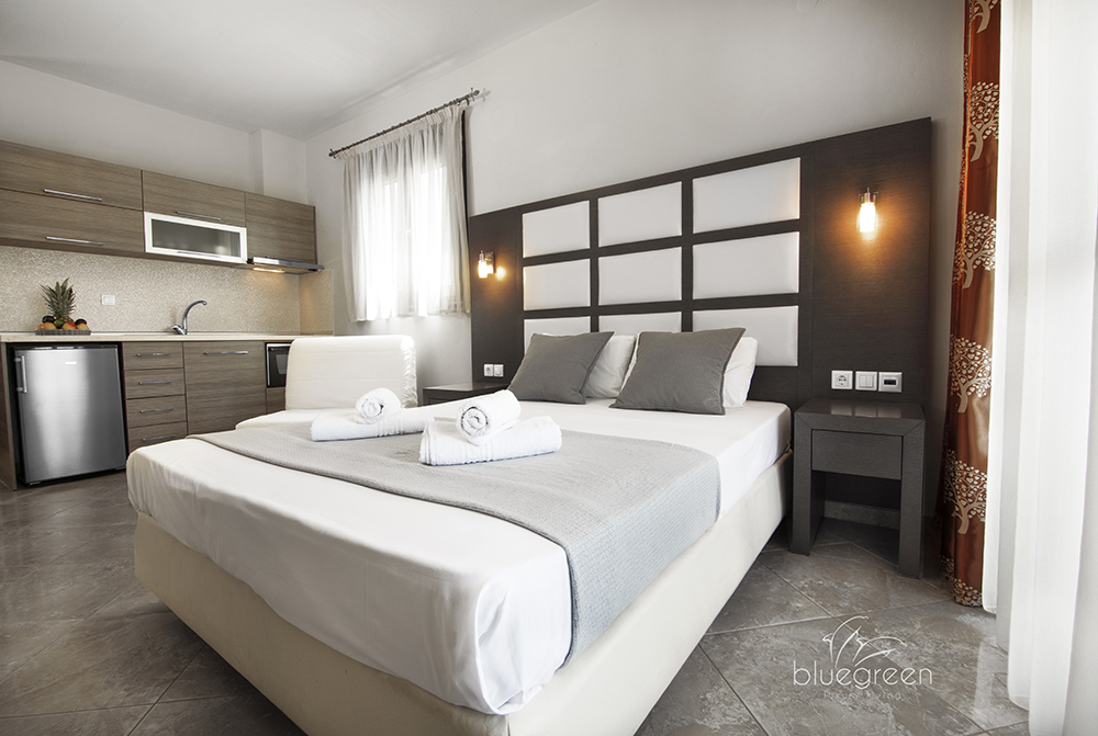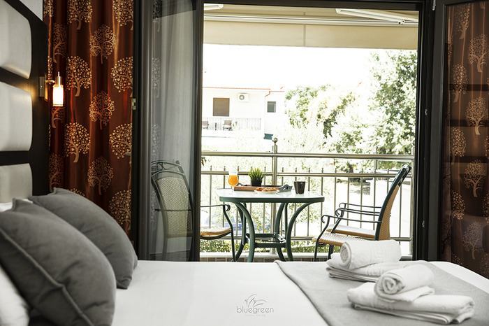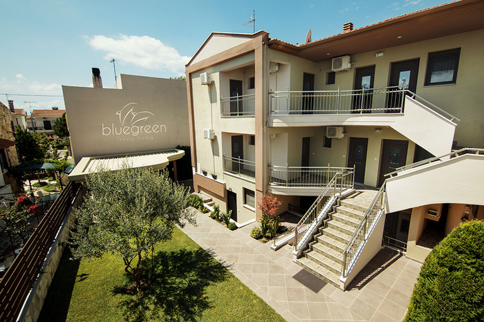PORTO NIKITI BLUE GREEN – Новата луксузна куќа Porto Nikiti се наоѓа во мирниот дел на Никити на 190 m oд плажа. Апартманите и студијата се наоѓаат на ниско приземје, на прв и втор кат. Студијата се за 2-3 лица со удобна фотеља на расклопување, a апартманите се за 4 лица. Сите имаат тенда, комарници, SAT TV, сигнал за бежичен интернет, за чија брзина и проток агенцијата не може да гарантира и клима уред, чие користење е вклучено во цената. Организирано е чистење два пати во текот на престојот. Кујните имаат мал шпорет и мал фрижидер. Има по 1 пешкир по лице. Сите имаат тенди.