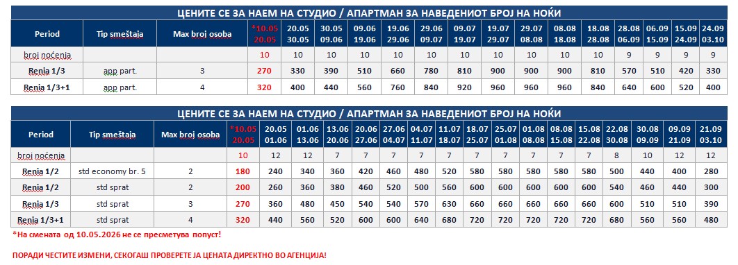 *Понудата е исклучиво за сопствен превоз и нема можност за резервација на автобуски превоз од Македонија!