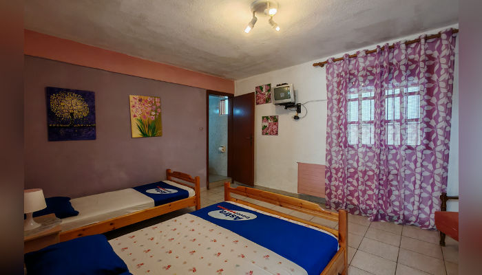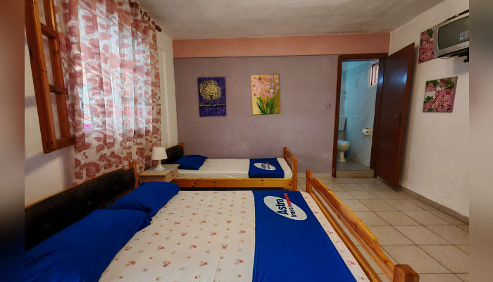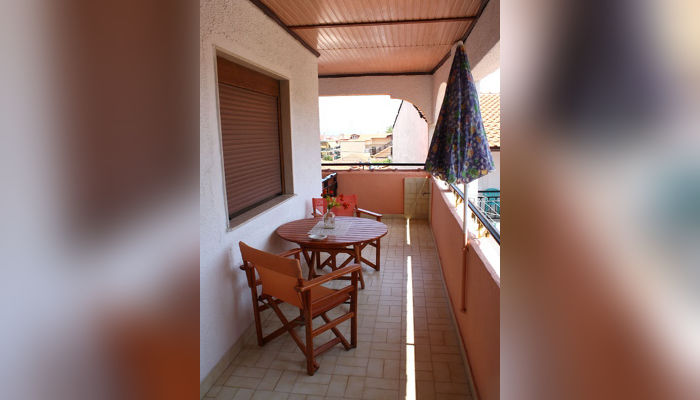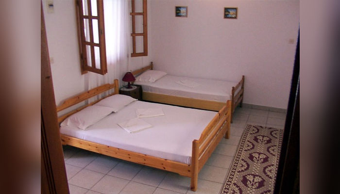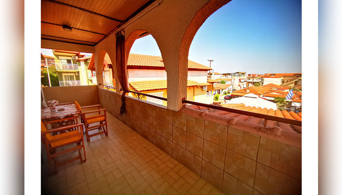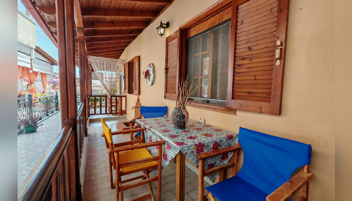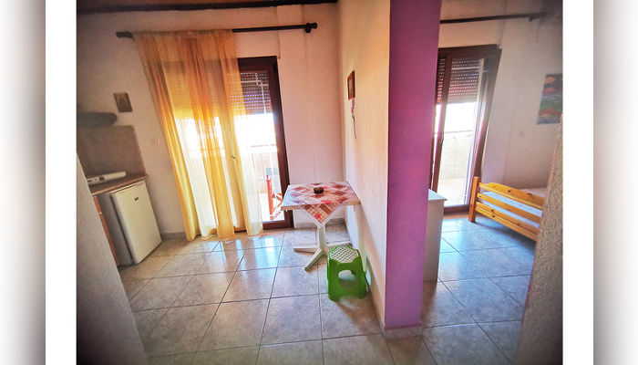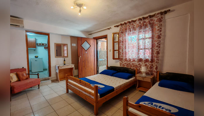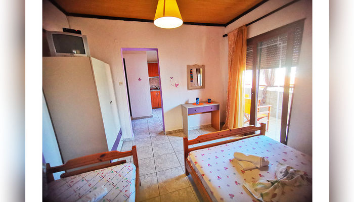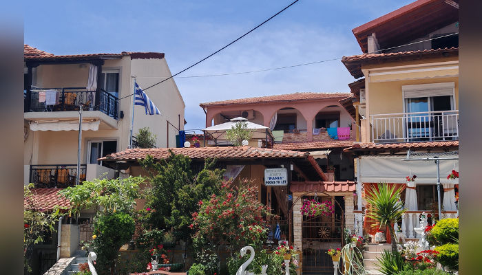 RENIA – Се наоѓа на 180 m oд плажата во мирниот дел на стариот дел на Сарти. Два трикреветни апартмани се на приземје, вовлечени од улица, a две двокреветни и трокреветно студио се на прв кат. Сите апартмани имаат комарници, TV и клима која се доплаќа, како и сигнал за бежичен интернет, за чија брзина агенцијата не може да гарантира. Климата е вклучена во цената само за студио бр. 5 – за две лица, со нешто помала квадратура и издвоена тераса. Нема пешкири.