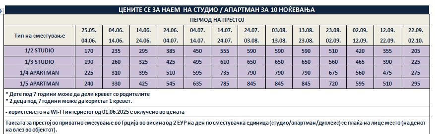 *Понудата е исклучиво за сопствен превоз и нема можност за резервација на автобуски превоз од Македонија!